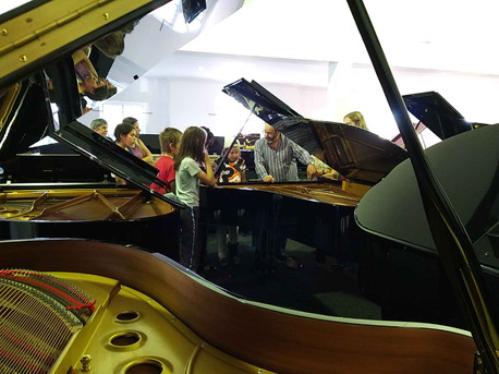 From there Ian moved on to discussing the basics of piano tuning. Starting with the fact that many of the notes are sounded by multiple strings being struck simultaneously by a hammer. Each of these strings needs to be independently tuned, first to the other strings making up that note and then in relation to the other notes. There was some discussion of what concert pitch is, and how it has changed over time. Ian asked some brave volunteers among the children to try their hand at tuning some clearly out of tune notes; some with great success, some less successful. We then moved on to watching some of our skilled technicians work on restoring a piano keyboard to its former glory, with all the detailed work that goes into it. After a quick pit-stop we ended the day looking at digital pianos, talking about how they have developed over the past twenty years, what they are good for and how rich an experience they provide especially to more beginner students.